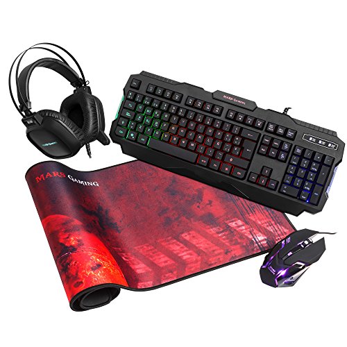 - ~Pack gaming con iluminación RGB de teclado, ratón, auriculares y alfombrilla.~