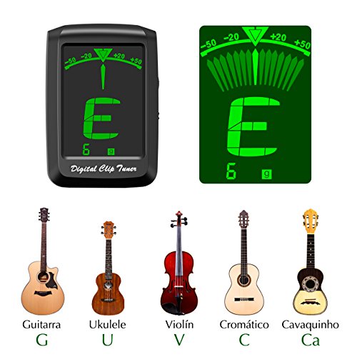 - ~🎼 ã€CLIP & TUNE. Fácil de operar】Sujeta el afinador al cabezal y comienza a afinar. La pantalla se pondrá verde cuando esté en sintonÃa.~