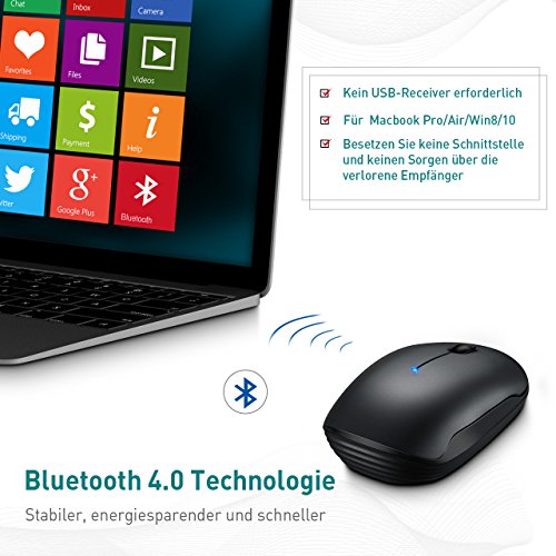 - ~〠Modo Bluetooth 4.0 y modo inalámbrico 2.4 G: 】A diferencia de la mayorÃa de los ratones convencionales, que deben conectarse con cable, este ratón inalámbrico viene con un modo dual y puede utilizarlo en modo Bluetooth 4.0 o en modo inalámbrico 2.4 G; por un lado, no es necesaria ninguna interfaz y no hace falta preocuparse por la pérdida de señal, y por la otra, ahorra tiempo en el emparejamiento.~