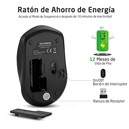- ~ã€Bien Construida y Amplia Compatibilidad】 Probado durante 3.000.000 veces de vida útil de clics. Material plástico de ingenierÃa ABS para resistencia al desgaste. Compatible con Windows 2000 / XP / VISTA / 7/8/10, Mac OS. Nuestro mouse inalámbrico Victsing incluye una garantÃa considerada (★ 45 dÃas de devolución de dinero y 12 meses de garantÃa ★).~