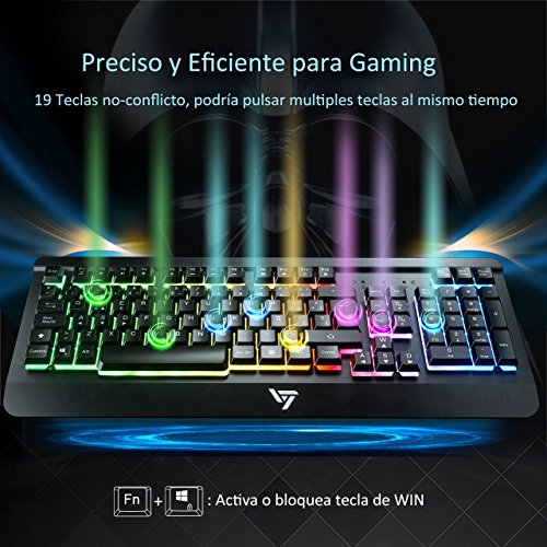 - ~ã€19 Teclas sin Conflicto y 12 Teclas Multimedia】La tecnologÃa anti-fantasmas permite que varias teclas funcionen simultáneamente para proporcionar una respuesta rápida al juego. 12 combinaciones de teclas multimedia facilitan el funcionamiento de tu trabajo o juego y mejoran la eficiencia.~