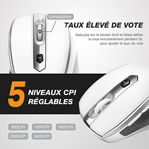 - ~ã€5 DPI Ajustables】800-1200-1600-2000-2400, fácil de cambia la sensibilidad del cursor depende del ambiente.~