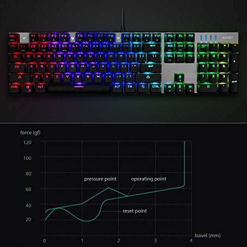 - AUKEY Teclado Mec nico LED-Backlit Teclado Gaming con Switches Blue 104 Teclas English Layout US con Metal Panel 100 Anti-ghosting para Jugadores y Mecan grafos Negro