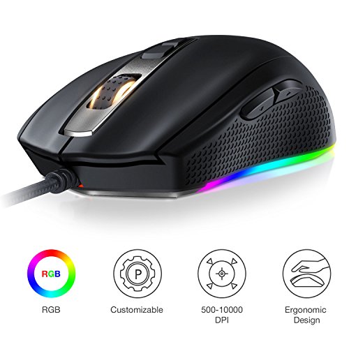 - ~⇠TOTALMENTE PERSONALIZABLE CON EL CONTROLADOR EN ESPAÑOL: Uno de los pocos ratones con controladores en español. Ajusta los niveles de DPI de 500 a 10.000 DPI para que el ratón detecte y reaccione a todos y cada uno de tus movimientos. Aún mejor, alterna entre dos niveles de DPI con facilidad. Tus hábitos de juego son únicos, por lo que el ratón te ofrece 7 botones programables para calibrarlo a la perfección a tu estilo de juego particular. Todo ello en tu lengua materna.~